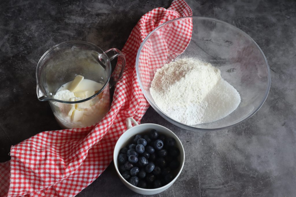 Ingrediënten voor het maken van bosbessenpannenkoeken