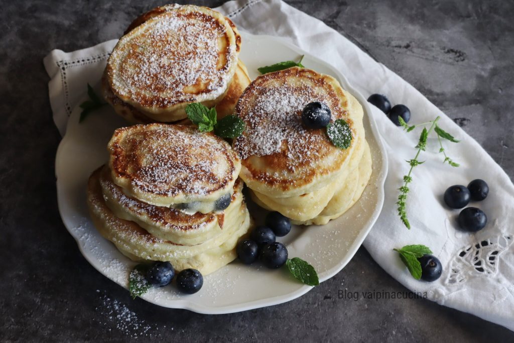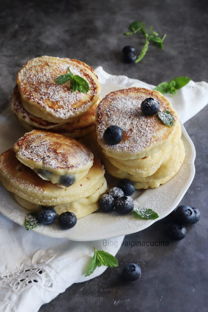Verse bosbessenpannenkoeken die nu gemakkelijk in de bergen te vinden zijn, zowel wilde als gecultiveerde. Zwarte bosbessen worden al lang gebruikt in zoete en hartige gerechten in de keuken en zijn al bekend in de fytotherapeutische en volksgeneeskunde. Ze zijn echt rijk aan heilzame stoffen zoals flavonoïden, tannines, vitamines en anthocyanen, echt krachtige antioxidanten die de cellen beschermen. Natuurlijk niet alleen dat: ze beheersen de bloedsuikerspiegel en hebben ontstekingsremmende effecten. Het mooie van bosbessen is dat ze vers of gedroogd, bevroren of in de vorm van jam, ijs of zoetigheden in het algemeen kunnen worden geconsumeerd. Wanneer het seizoen is, juist nu, gebruik ik ze graag en vaak voor mijn pannenkoeken. Overigens hebben we allemaal het idee dat pannenkoeken Amerikaans of Engels zijn, maar eigenlijk is hun oorsprong veel ouder, zelfs Grieks.