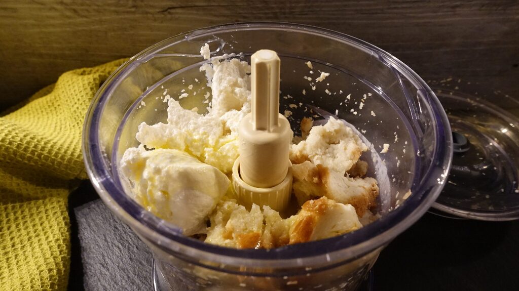 • De eerste en langste stap is zeker het verwijderen van de schil van de walnoten. Blancheer de walnoothelften enkele minuten in kokend water, giet ze af en verwijder de schil. Ondertussen laat u de plakken casinobrood weken in de melk en knijpt u ze uit, doe de walnoothelften, het geweekt brood, de ricotta, de in stukjes gesneden knoflook, het zout en de olie in de blender en begin te mixen totdat de pesto glad en homogeen is, voeg indien nodig nog wat olie toe.