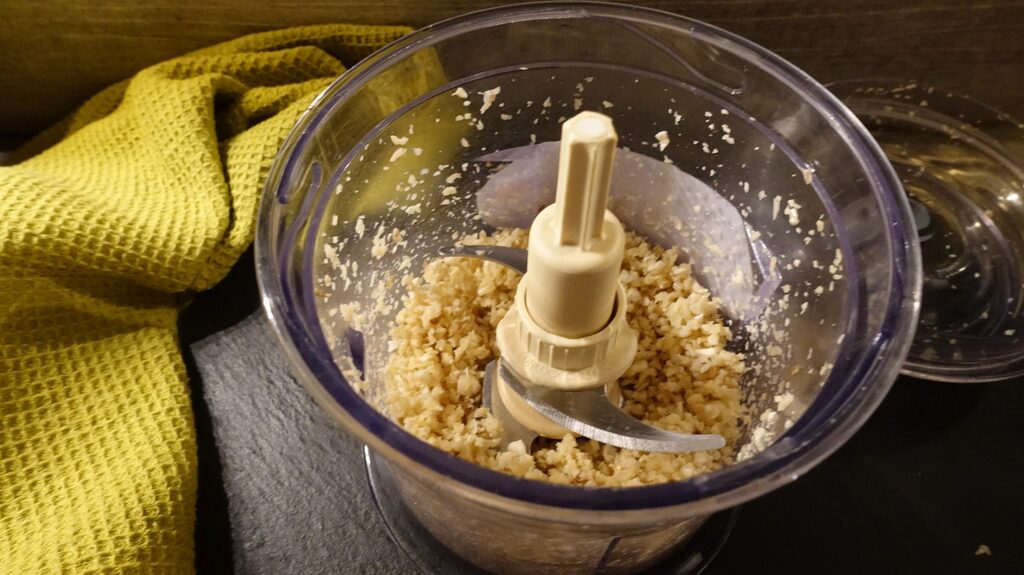 • Klaar! Onze pesto van walnoten en ricotta is klaar.