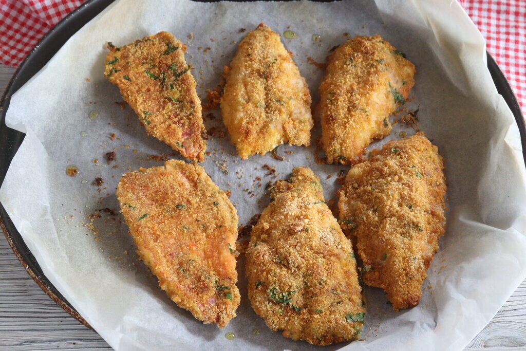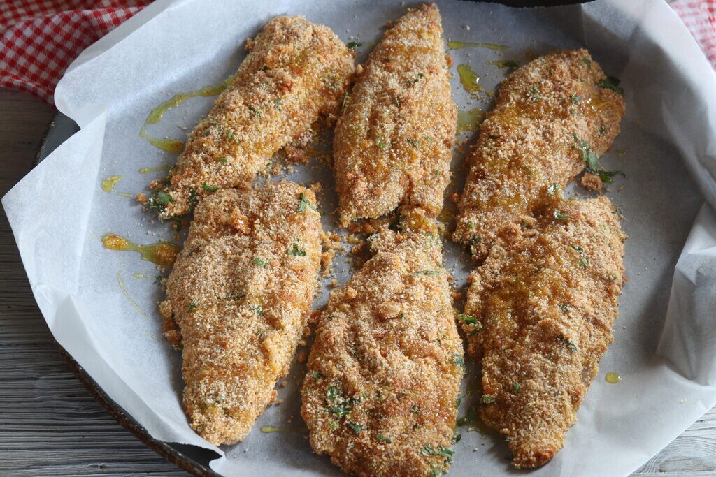 Ik moet zeggen dat de visboer de rode mul fileerde waar ik ze kocht, omdat ze groot waren. Ik maakte mijn paneermeel met knoflook en gehakte peterselie, zout en peper, zoete paprika en gedroogde tomatenpasta die ik zelf heb gemaakt en hier voegde ik ook de link in blauw toe. Maar ik weet zeker dat gespecialiseerde winkels en alle supermarkten uitstekende kwaliteitsproducten verkopen die al klaar zijn om te gebruiken. Als laatste voegt u geraspte citroenschil toe aan het paneermeel. Dit maakt het verschil in smaak.