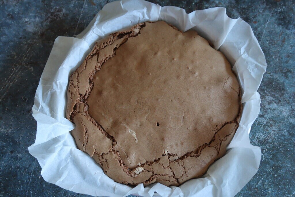 Je kunt de bakvorm invetten en bestuiven met bloem of bakpapier gebruiken. Het beslag is klaar; bak de Sachertaart in een voorverwarmde oven op 170° gedurende 35/40 minuten, hier geldt de satéprikker test om de gaarheid te controleren.