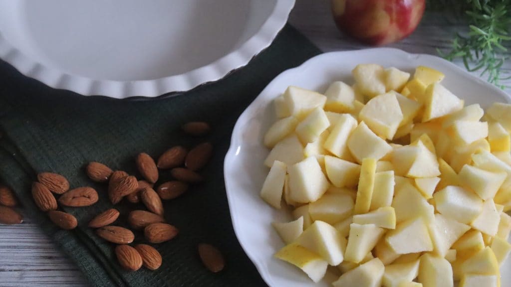 • Hak de geroosterde amandelen fijn en voeg ze aan de appels toe.