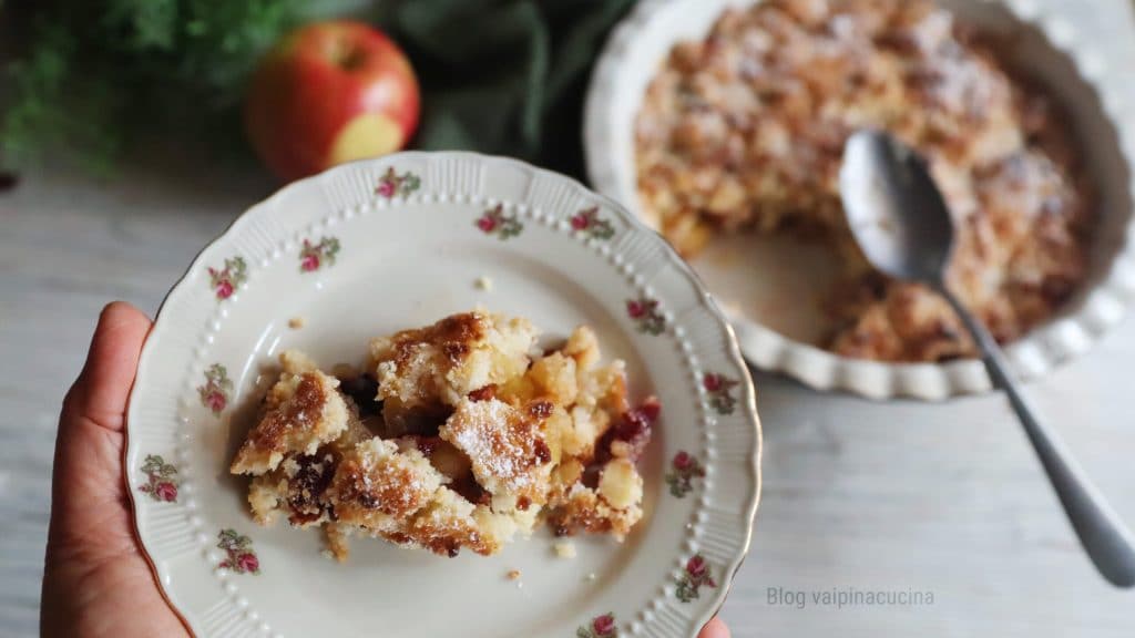 • En daar is het: de appelcrumble, een gemakkelijk recept om te bereiden in korte tijd en zonder de appels te schillen.