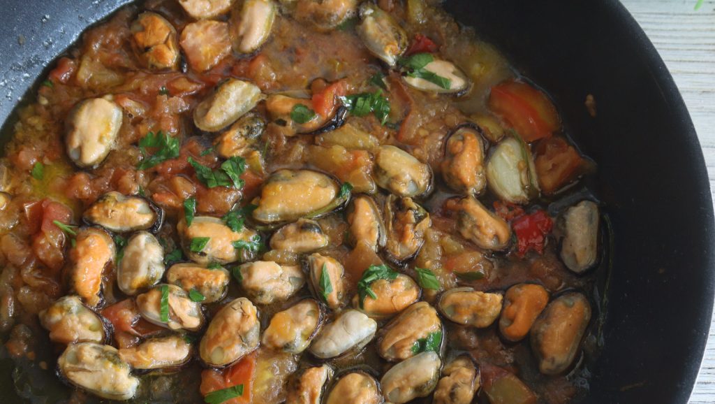 Spaghetti met bevroren en gepelde mosselen, gekocht bij de diepvrieswinkel, een winkel die altijd degenen helpt in de keuken die heel weinig tijd of weinig vaardigheid hebben met de potten en pannen. Het geweldige is dat alles al schoon is, zoals de vissen die, laten we eerlijk zijn, een van de vele redenen is waarom ze minder worden geconsumeerd. Ik ben de eerste, maar het mooie is ook dat in de viswinkel, met veel goede wil, de vis wordt gekocht en ze graag voor je schoonmaken. Gepelde mosselen hebben het voordeel dat ze meteen kunnen worden gebruikt en dat je niet uren hoeft te besteden aan het schoonmaken van de schelpdieren. Deze schelp bestaat uit twee gescheiden schalen die door een elastisch ligament bij elkaar worden gehouden, vandaar de naam tweekleppigen. In de zomer en op vakantie sta je meer open voor goede en lange kookbeurten, maar als je thuiskomt, ben je meer praktisch en snel. Mosselen behoren tot de familie van schelpdieren, net als oesters, venusschelpen, sint-jakobsschelpen en vele anderen.