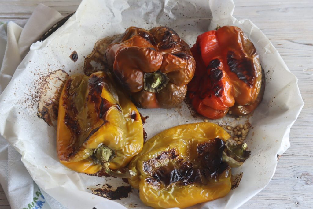 Meestal, als ik paprika’s moet grillen, beperk ik me niet tot het koken van een paar tegelijk, maar maak ik er veel en gebruik ze dan in verschillende gerechten. Soms maak ik ze schoon en nadat ik ze heb gedroogd, vries ik ze in plastic zakjes in om ze te gebruiken op momenten van luiheid of weinig tijd om te koken.