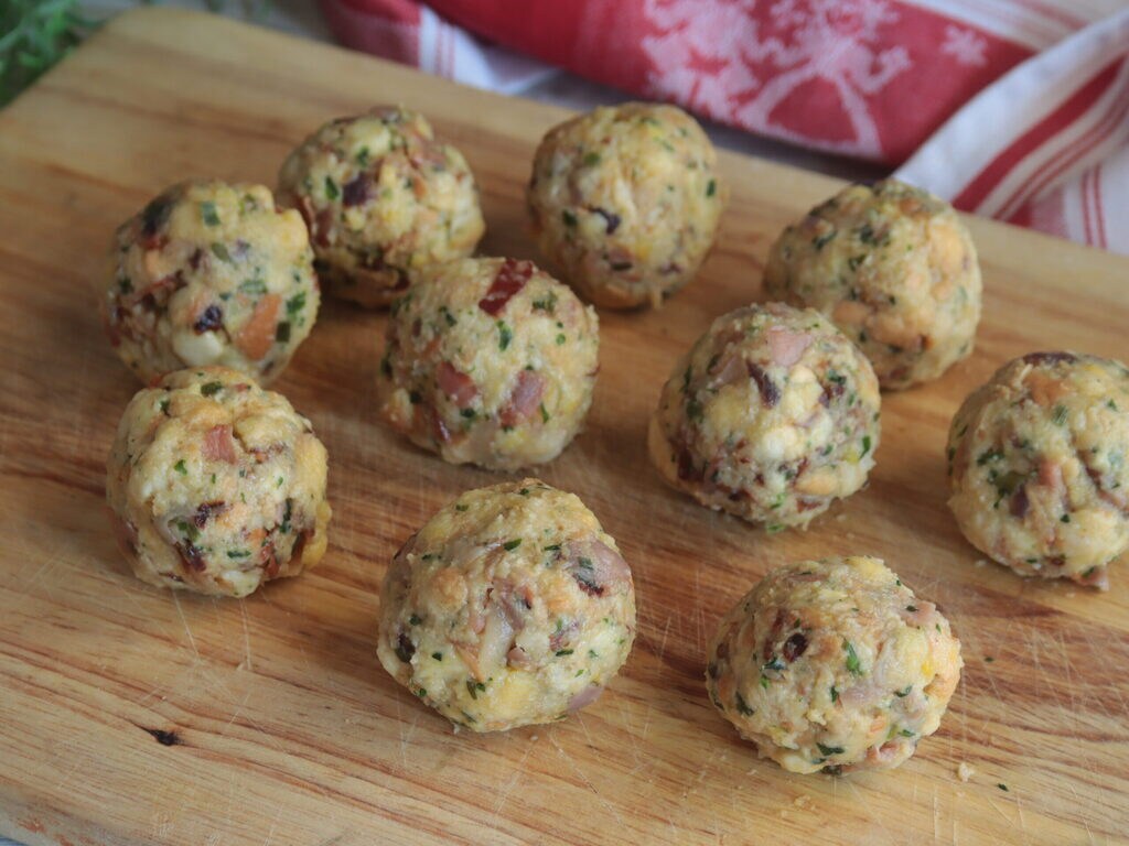 Maak met vochtige handen ronde speck knödel en kook ze 15 minuten in gezouten water, en ze zijn klaar.