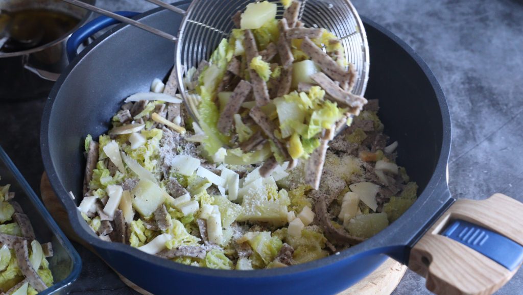• Na de tijd, haal de pizzoccheri uit het kookwater.