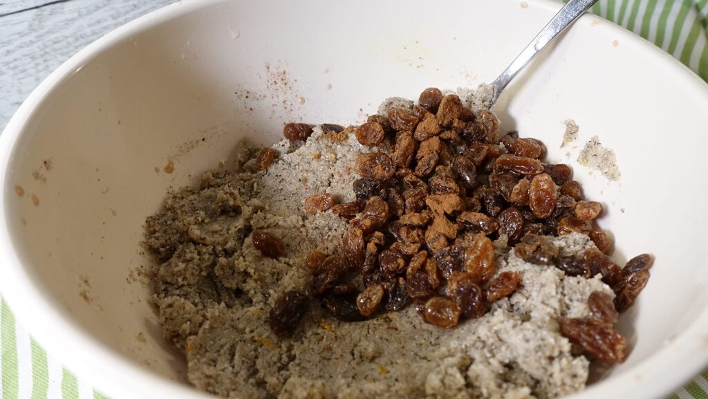 Alle ingrediënten kunnen worden vervangen naar eigen voorkeur, je kunt boekweitmeel vervangen door amandelmeel. Rozijnen kunnen worden vervangen door gedroogde cranberry’s, en water kan worden vervangen door sinaasappelsap.