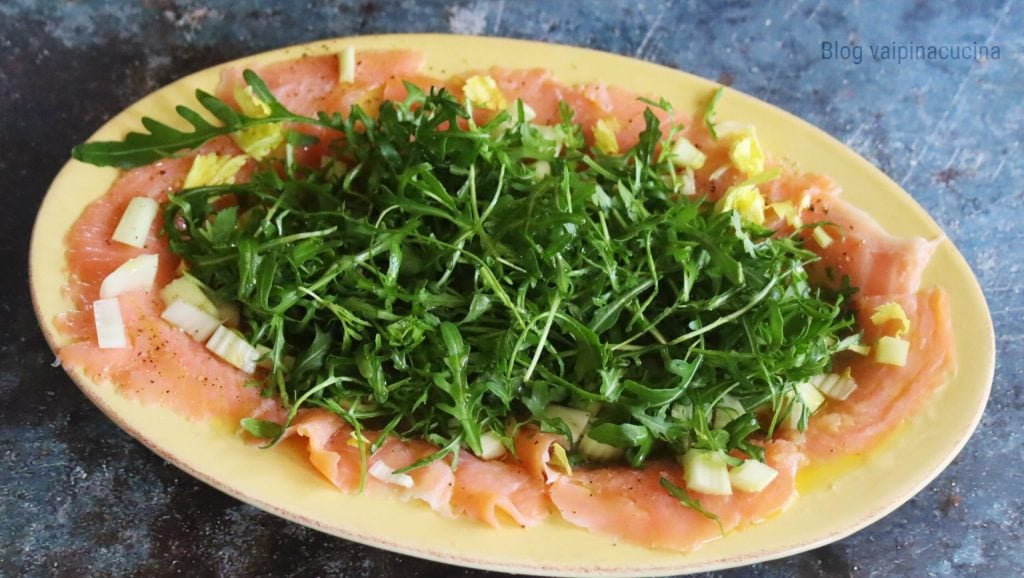 Zalm en rucola: een gemakkelijk te bereiden voorgerecht, vrij snel en vooral lekker. Wilde exemplaren zijn bijzonder duur, terwijl zalmen die industrieel worden gekweekt, betaalbaarder zijn. Deze methode is dus duidelijk winstgevender. De zalmen worden gekweekt in de wateren van Noorwegen, Ierland en Schotland en worden tegen concurrerende prijzen verkocht, hoewel gerookte zalm wereldwijd de gerookte vis bij uitstek is, ook al is deze gekweekt.