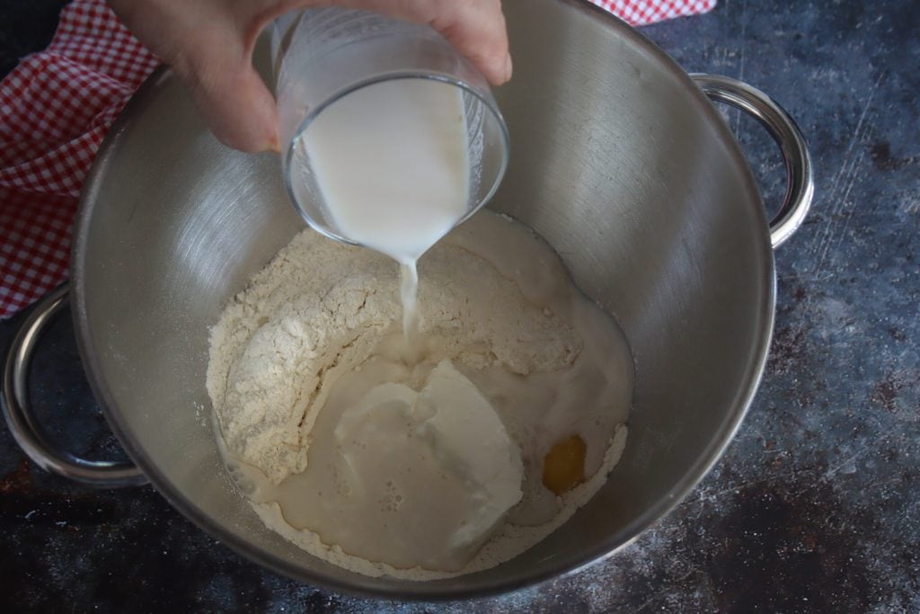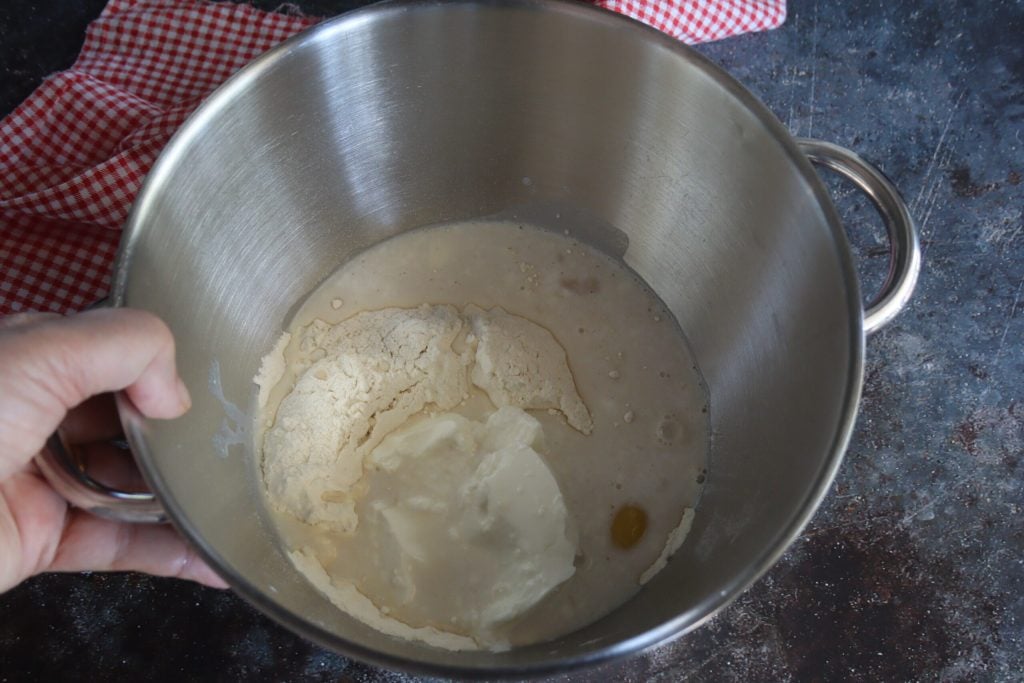 Gebruik de deeghaak om het mengsel een paar minuten te kneden.