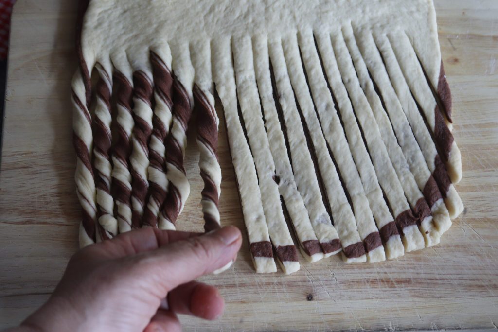 Snijd aan één kant de uiteinden af en draai ze om zichzelf, alsof je vlechten maakt.