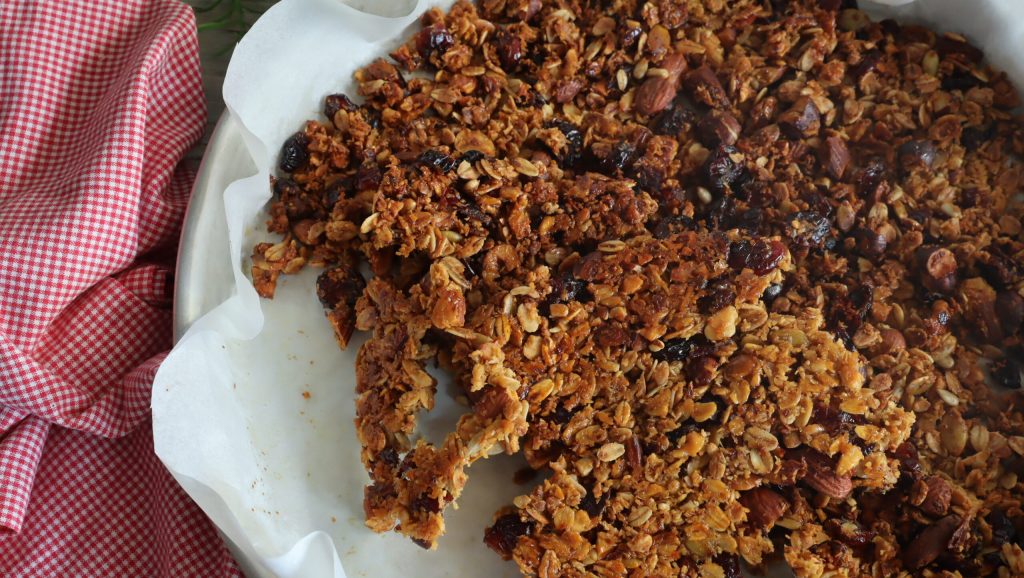• En hier is de zelfgemaakte granola klaar, ideaal voor ontbijt, tussendoortje en meer!