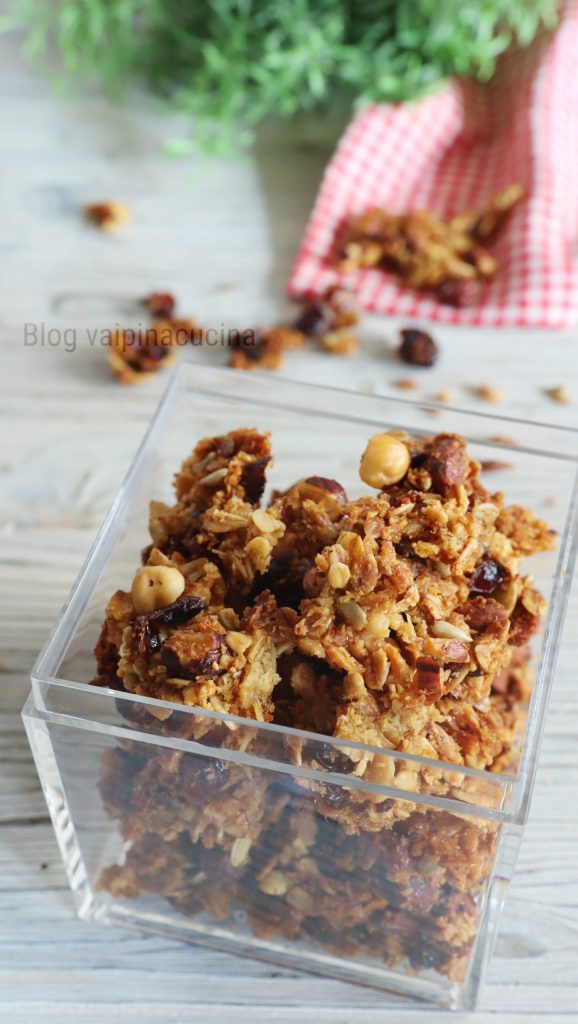 Zelfgemaakte granola, de lekkerste, voedzaamste en gezondste voor het ontbijt voor iedereen, en vooral voor jongeren die meestal kant-en-klare snacks verkiezen. Super energiek met melk of yoghurt, zorgt voor een echt goed ontbijt en het is echt gemakkelijk om het thuis te maken. Natuurlijk moet het worden gebakken in de oven met honing en suiker, wat het die aangename knapperigheid geeft. In tegenstelling tot granola, zijn muesli’s alleen een mengsel van gedroogd fruit en havervlokken zonder koken, alles rauw en zonder suiker.