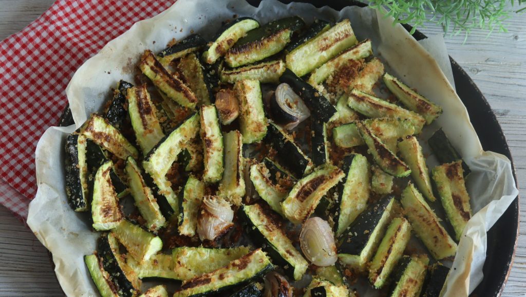 Zucchine met broodkruimels uit de oven, zoals mijn moeder ze maakte om ons kinderen van een seizoensgebonden bijgerecht te voorzien en om zo de minder geliefde groenten te verbergen. Praktisch vetvrij, een waardevolle bron van vitamines, kalium en mineralen en zo licht dat ze perfect zijn voor wie een gecontroleerd dieet heeft, 10 calorieën per 100 gram. Ook perfect voor mensen met hypertensie en nog veel meer, en ik voeg eraan toe dat als ze goed gekookt zijn, ze ons mooie verrassingen bieden.