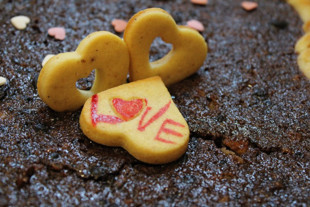 Uw taart is klaar: Decoreer naar uw wens: zoals hierboven vermeld, heb ik harten gebruikt om in het thema van het feest te blijven en wat amarene.