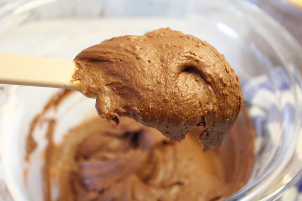 • Ondertussen meng je in een kom de melk, gesmolten boter, honing, marsala, cacao en ten slotte de suiker en het gezeefde bakpoeder met het meel. Goed mengen en overbrengen naar de spuitzak met een mondstuk van ongeveer 1 cm breed.