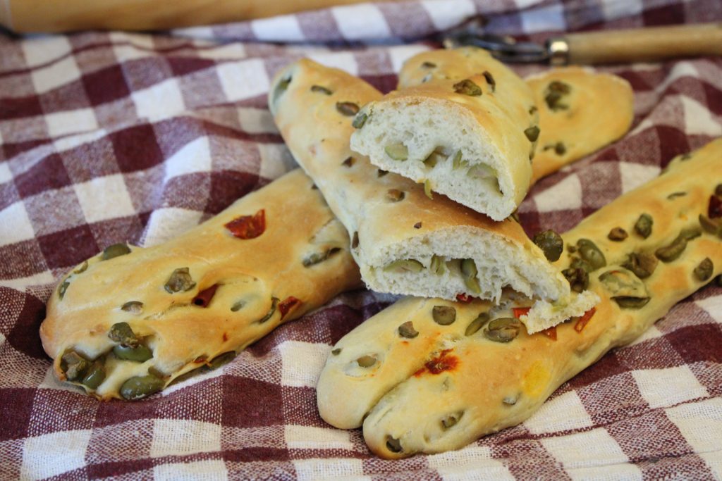 Nu ik het recept schrijf, is het brood al op, mijn man stopte niet met naar de keuken gaan om een stukje te ‘stelen’, net klaar. Ik heb geplette en pittige Calabrese olijven gebruikt en ook chilipeper toegevoegd om het echt uitnodigend en smakelijk te maken.