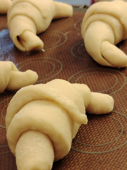 • En geef vorm aan de croissants. Laat rijzen in de oven met een pannetje kokend water tot het verdubbeld is.