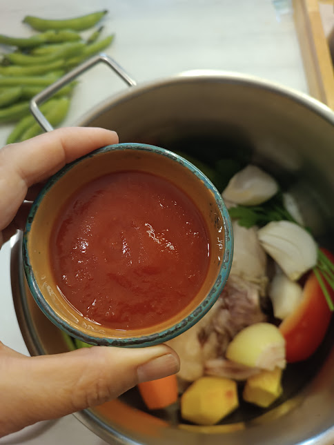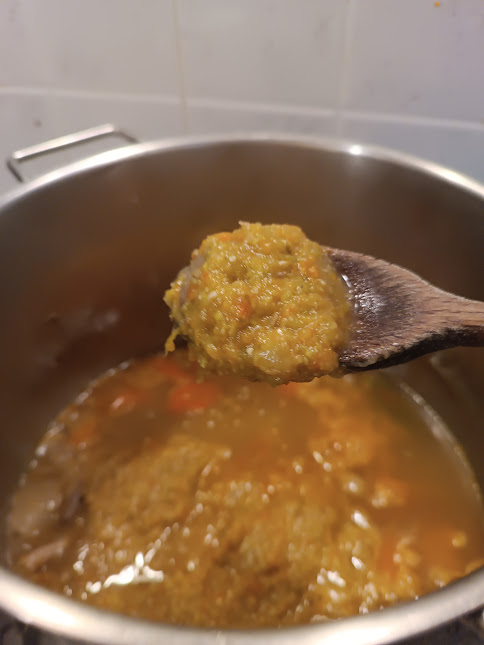 • Pureer een deel van de groenten en voeg dan je reepjes toe, kook nog vijf minuten en het is klaar om te worden geserveerd!