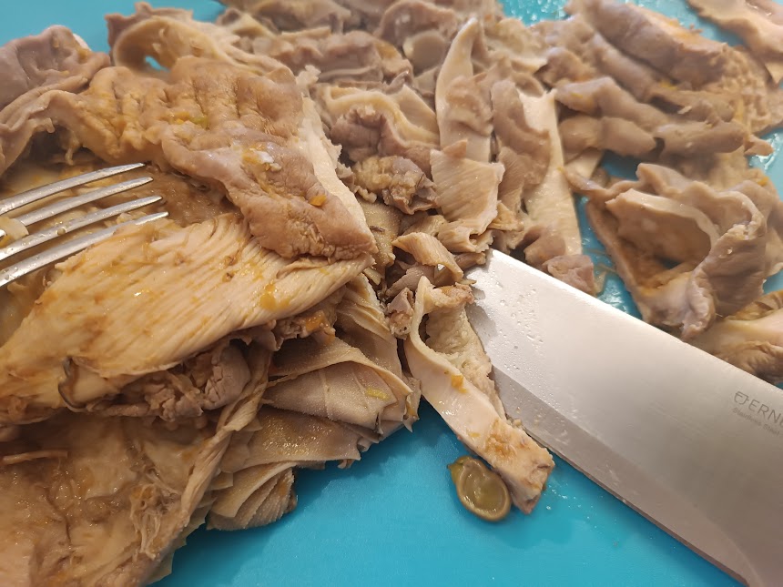 Na het abomasum grondig te hebben schoongemaakt, wordt het in een groentebouillon gekookt totdat het zacht wordt… Daarna geserveerd met groene of pittige saus