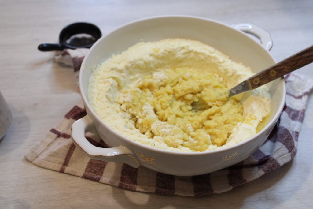 Meng melk, bloem en gist om een voordeeg te maken…