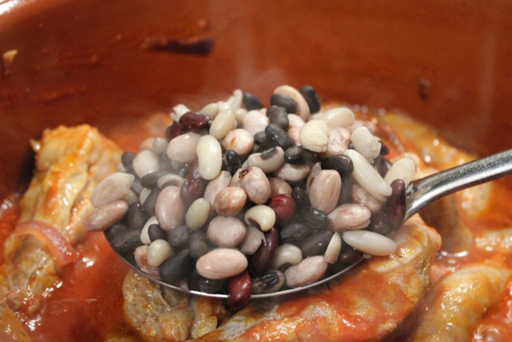 Alle bonen die beschikbaar waren, werden gebruikt, de borlotti, de cannellini, de witte van Spanje en de oogbonen waren de meest voorkomende soorten, ik hou ook van de zwarte en rode, dus ik gebruik er veel van.