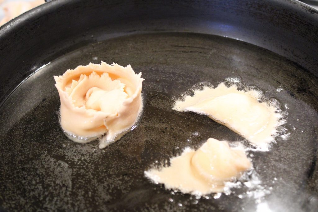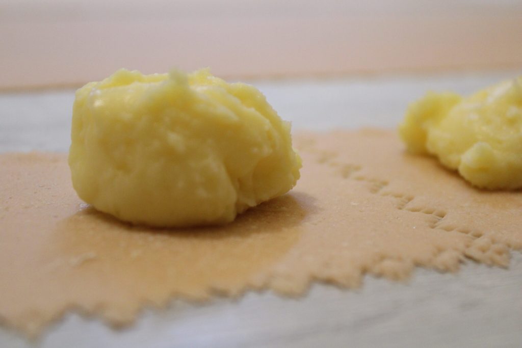 • Snijd het deeg in gelijkmatige vierkanten voor ravioli, of cirkels voor halve maantjes. Ik heb ook spiralen gevormd door de room in een deegdeeg te wikkelen en vervolgens op te rollen tot rozen.