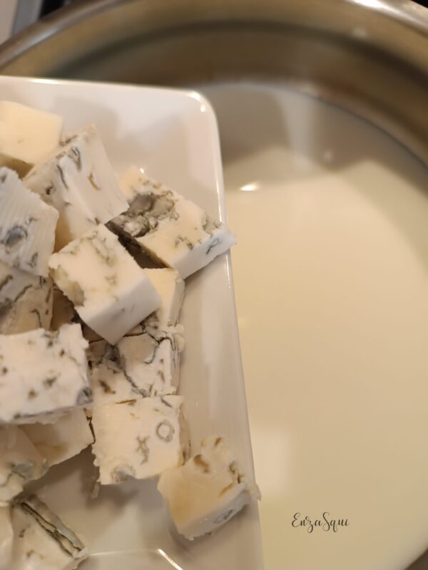 • Je kunt nu de in blokjes gesneden blauw smelten door het aan de melk toe te voegen in een steelpan op laag vuur