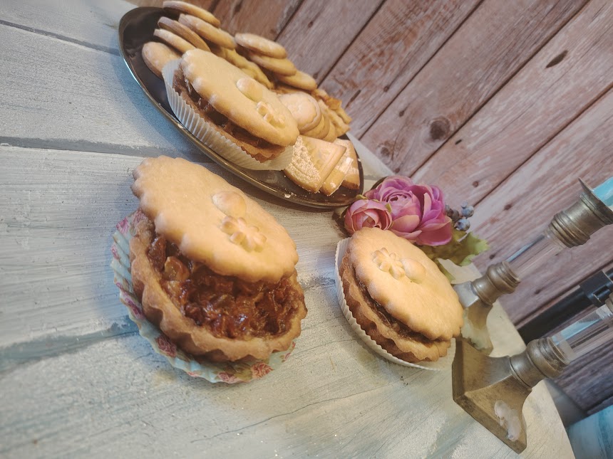 • Bekleed de vormpjes met het deeg; rol en snijd de deksels uit, vorm een kleine bal en gebruik deze om te voltooien, zoals op de foto. Het bakken gebeurt op twee aparte bakplaten, omdat de tijden verschillen. Zodra de randen kleuren, kunt u ze uit de oven halen. Elke oven heeft zijn eigen eigenschappen, mijn oven is soms grillig, dus ik moet opletten dat ik het niet verbrand of het deeg rauw laat. De gegeven aanwijzingen zijn echter ideaal.