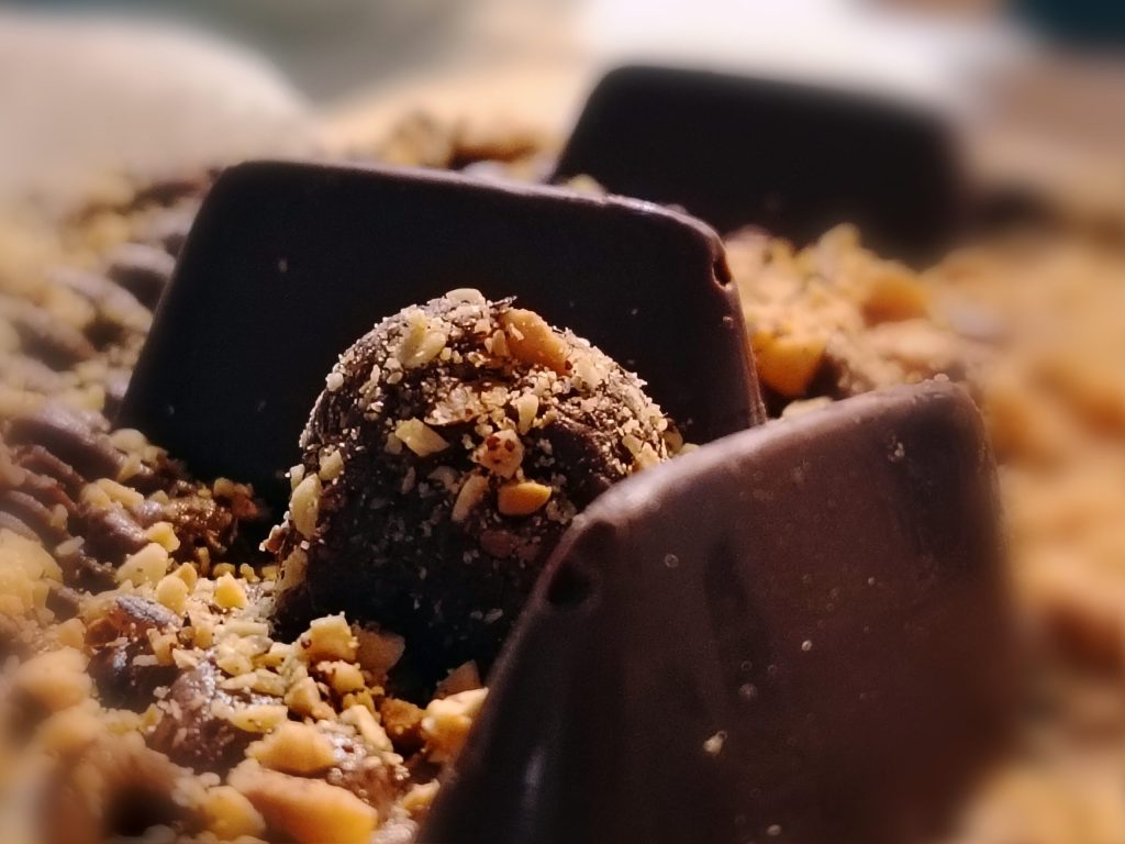 Garneer naar smaak: ik heb gianduiotti, amaretti-hazelnootballetjes en hazelnootkruim gebruikt.