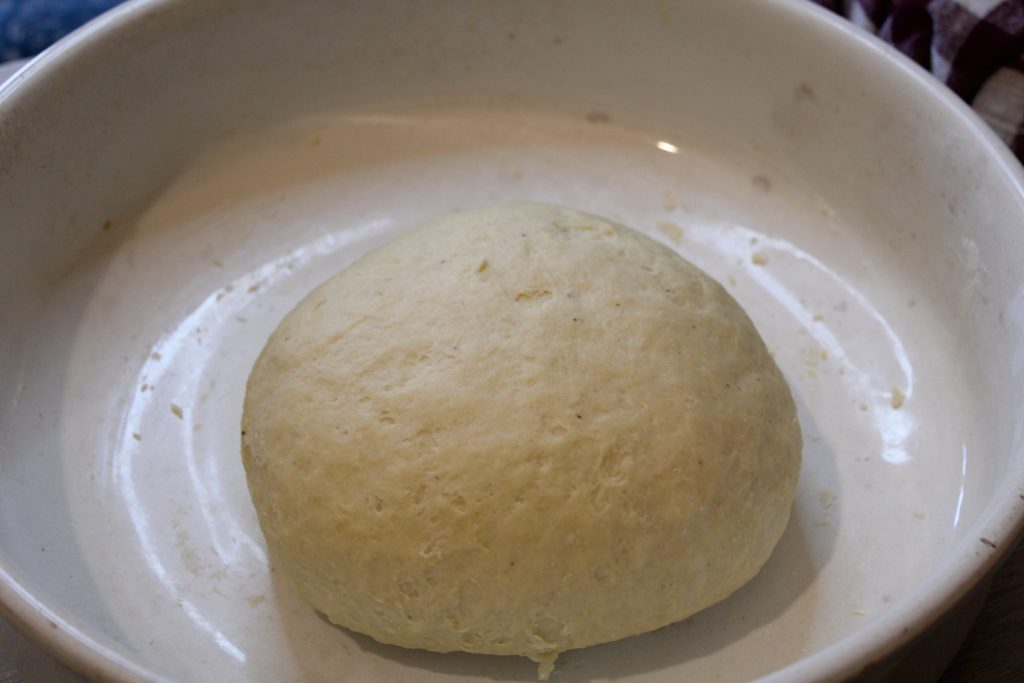 - naar behoefte rode wijn (Je hebt ongeveer 250–300 ml nodig. Totdat je een stevig maar elastisch deeg krijgt.)