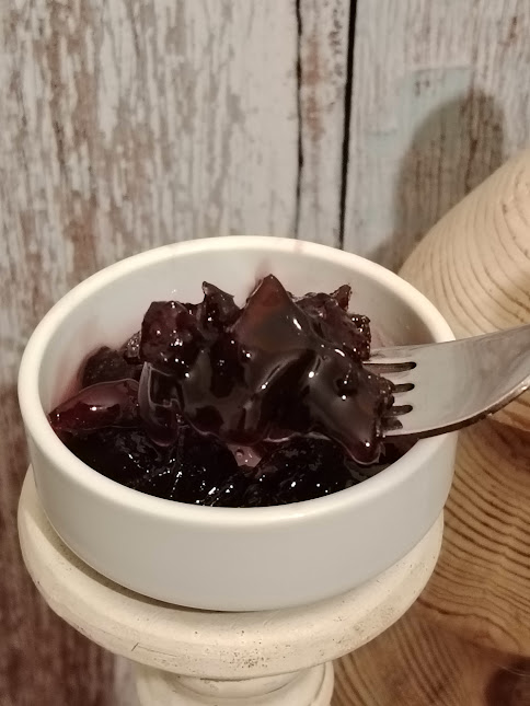 en met als excuus dat ik de bloedsuikerspiegel onder controle moet houden, kook ik met een laag suikergehalte waar mogelijk, ik hou van niet al te zoete desserts, jam die naar fruit smaakt en mostarda waarin ik de oorsprong kan herkennen. Ik hou ervan om de ingrediënten te onderscheiden.