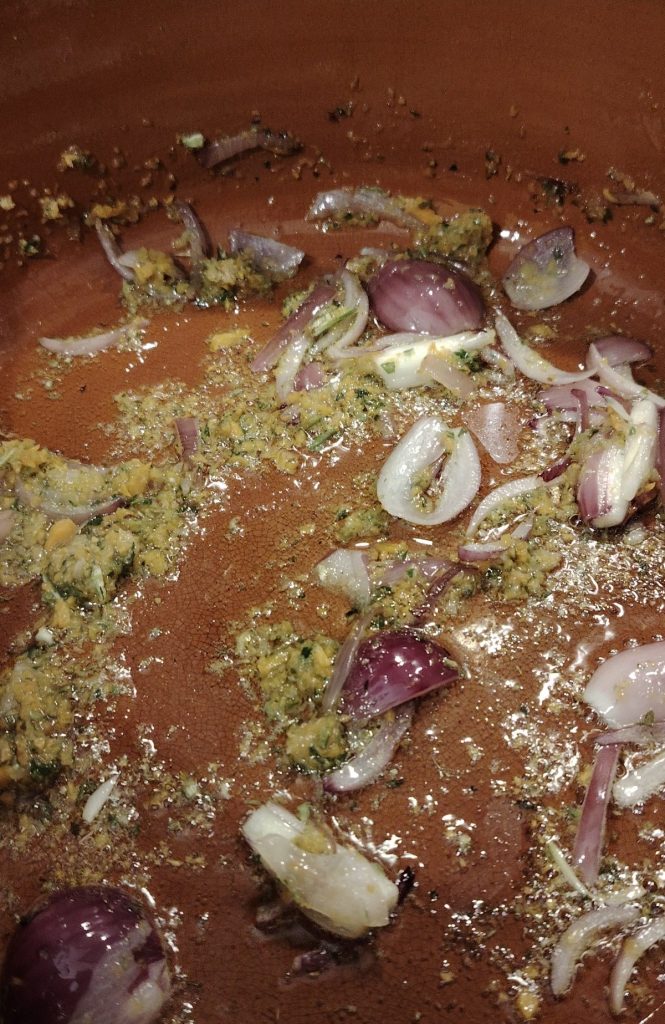 Voeg dan een deel van de marinade-wijn toe en laat het verdampen…