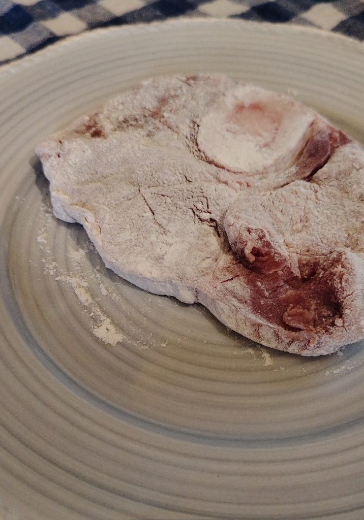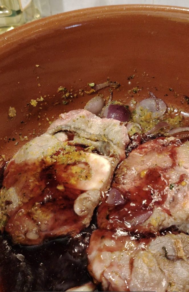 De avond ervoor, nadat u de randen van de ossobuco hebt gesneden, plaatst u ze in een kom met de wijn en laat u ze in de koelkast marineren tot de volgende dag. Bestuif ze goed vlak voordat u ze gaat koken.