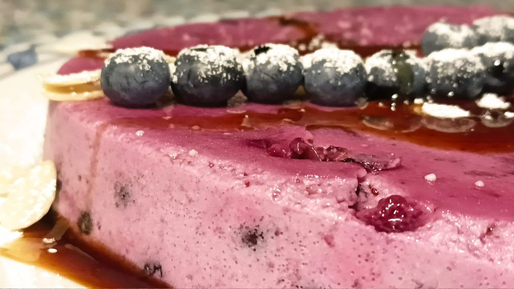 Ik heb gekozen voor de panna cotta met bosbessen. Het benadrukt kleur en smaak.