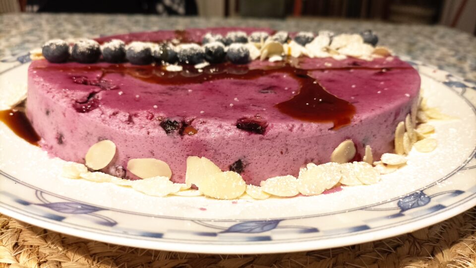 Op de terugweg uit de Po-vallei, met mijn mand vol bosbessen, kon ik het niet laten om een dessert te maken waar ik dol op ben (Helaas ben ik altijd op dieet en kan ik het alleen proeven)