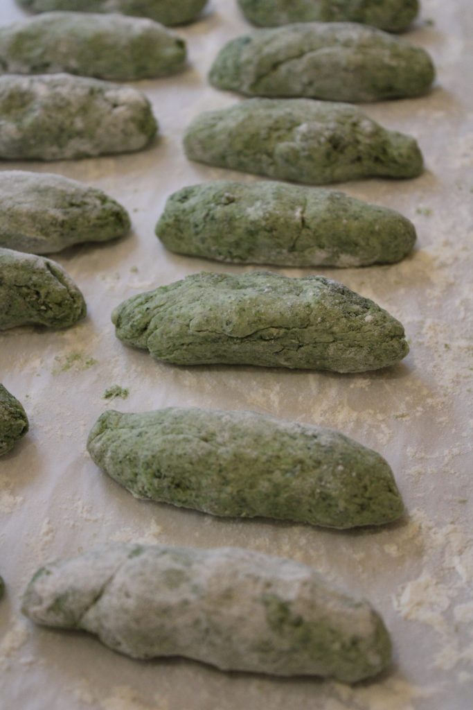 Vorm ballen zo groot als een mandarijn en geef ze vervolgens een langwerpige vorm.