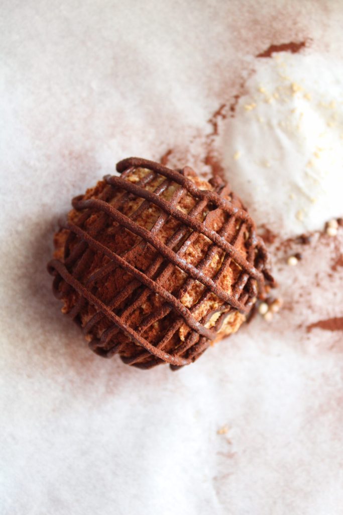 • Bestrooi met ongezoete cacao en decoreer naar wens. Ik gebruikte pure chocolade. Plaats ze in papieren vormpjes en laat rusten in de koelkast tot het serveren.