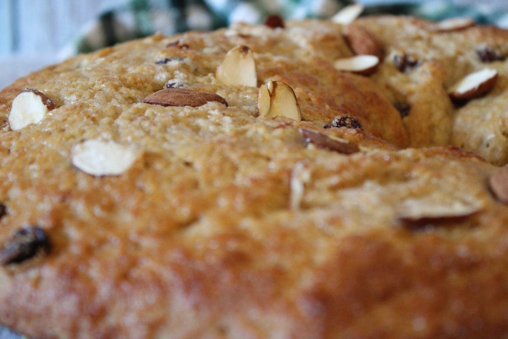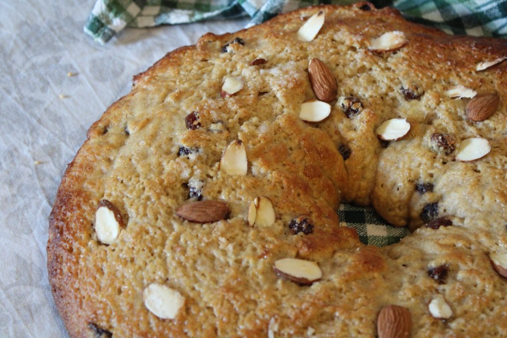 Het blijft een paar dagen buiten de koelkast goed. Ook heerlijk droog om in melk te dopen. Ideaal om te serveren met een goede thee of als nagerecht. Sommige mensen maken 5 inkepingen in het oppervlak om de Perugiaanse wijken te herdenken. Ik heb 5 amandelen geplaatst, anderen plaatsen 5 gekonfijte kersen.