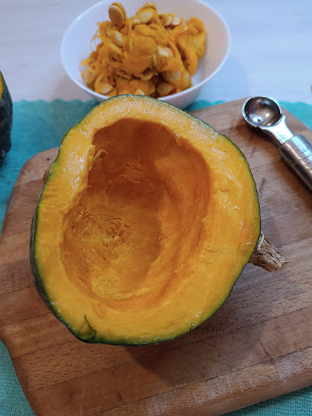 • Zoals hierboven geschreven, maak de pompoen schoon en snijd deze in kleine stukjes, zet opzij, snijd de ui in plakjes…