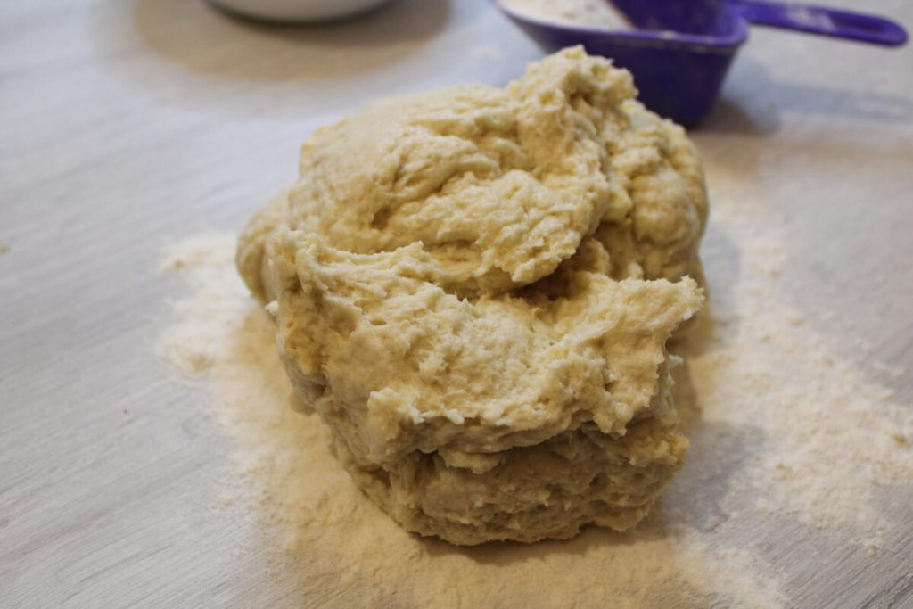 Neem het deeg terug, werk het opnieuw door en rol een laag van een halve cm dik uit.