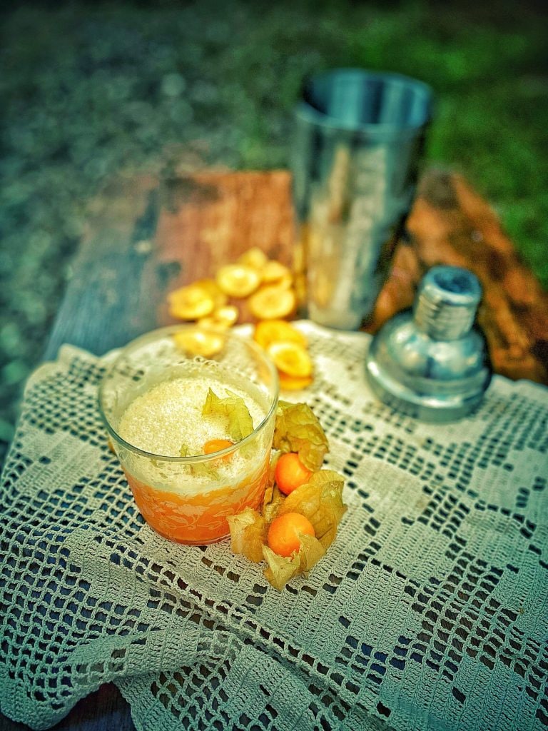 Ik kon niet anders dan het Aperitiefmenu afsluiten voor de rubriek Menu samenstellen met een cocktail: Aguaymanto sour, een Peruaanse cocktail op basis van Physalis peruviana, alias Kaapse kruisbes in het Italiaans.