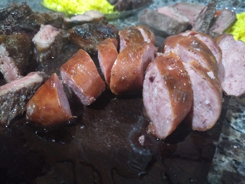 Wat is calabrese linguiça? Het is niet anders dan een verwant van onze worst, gemaakt van varkensvlees en meestal in de pan gebakken met ui (açebolada dus), het is ook een essentieel ingrediënt van de feijoada, een ander traditioneel Braziliaans gerecht. In Italië is het onvindbaar, je kunt het in Brazilië kopen of online, anders kun je proberen het zelf te maken. Hier stel ik een recept voor, maar het is essentieel om goed vlees te hebben.