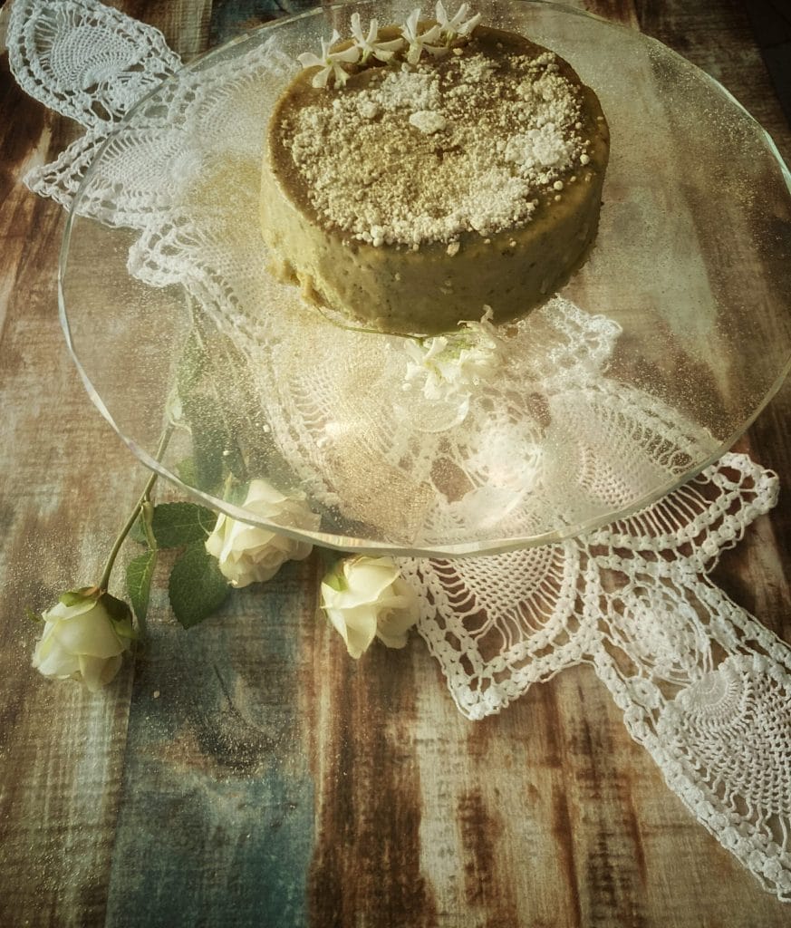 De textuur van de Cotton Matcha Cheesecake is die van een lichte, soufflé-achtige en luchtige taart, met een aardse smaak van groene thee die de smaak van de romige kaas in balans brengt.