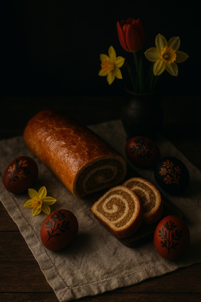 Orehova potica → Sloveense rol met zachter deeg, vaak gebakken in een vorm, rijker en soms met room/honing