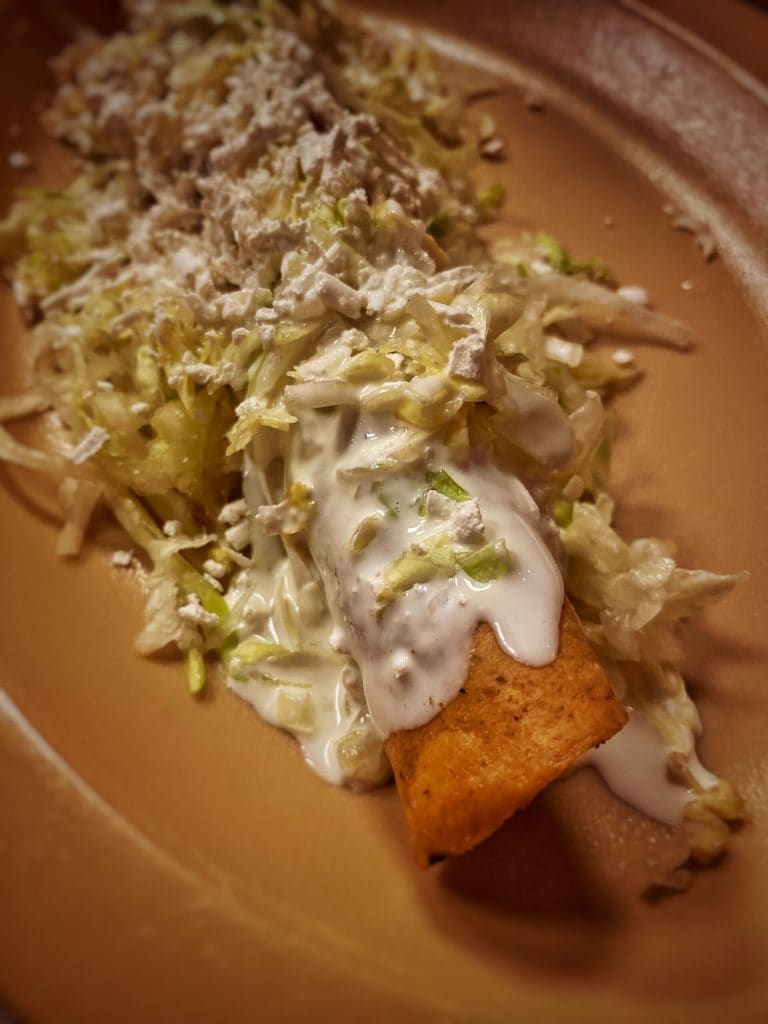 De Flautas, of tacos dorado, maken deel uit van de “antojitos mexicanos” (snacks).