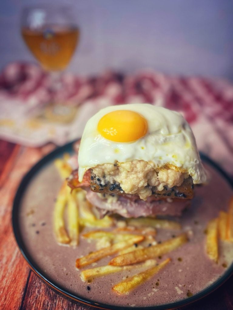 Serveer de francesinha meteen op een bedje van friet en als je, zoals ik, de speciale versie wilt, voeg dan bovenop een gebakken ei toe.