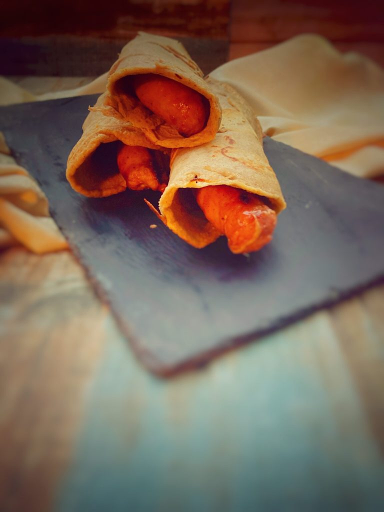 Laat de galettes afkoelen en rol ze rond de worst.