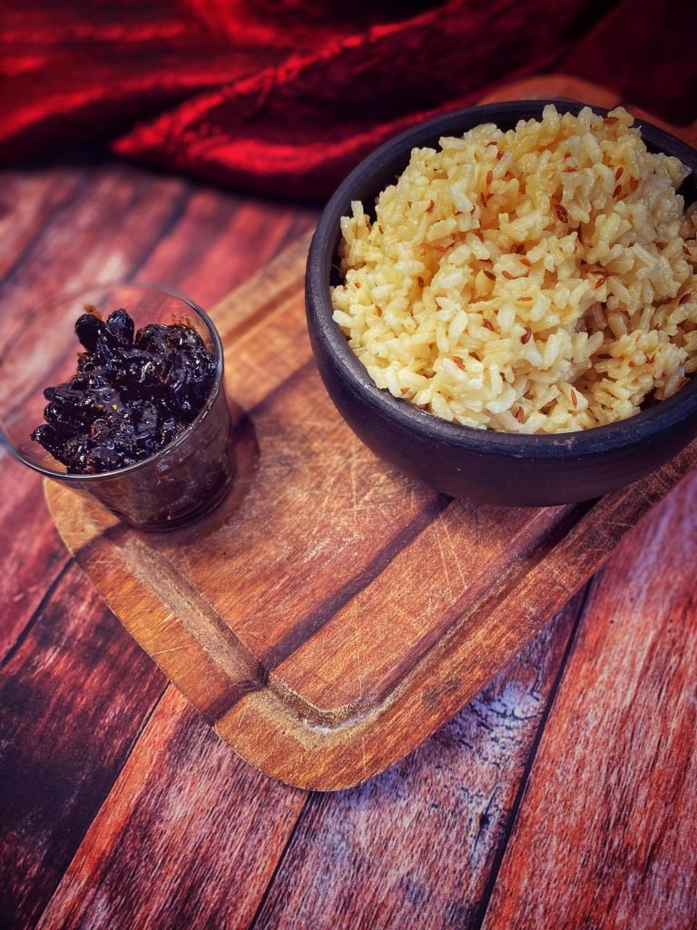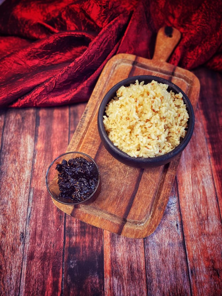 De gebruikte ingrediënten zijn: rijst, komijnzaad, plantaardige olie, uien, zout en korianderblaadjes.